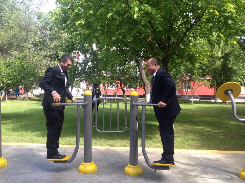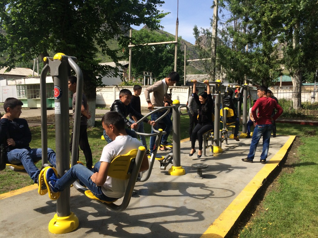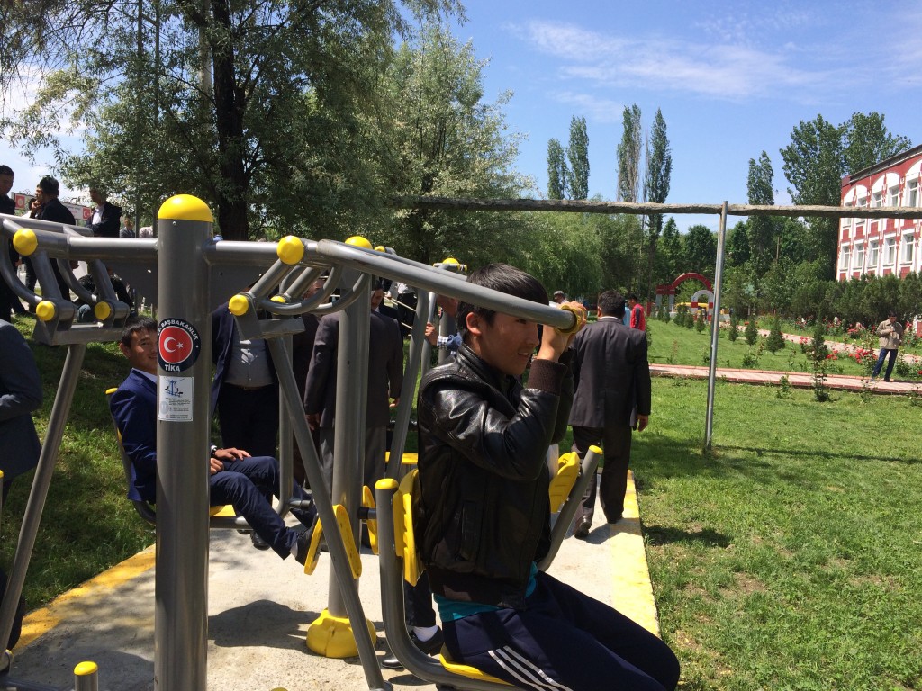 رئاسة الوكالة التركية للتعاون والتنسيق (تيكا)، بهدف دعم الحياة الصحية قامت بإنشاء المعدات الرياضية في الهواء الطلق في جامعة اوش الحكومية في قيرغيزستان.