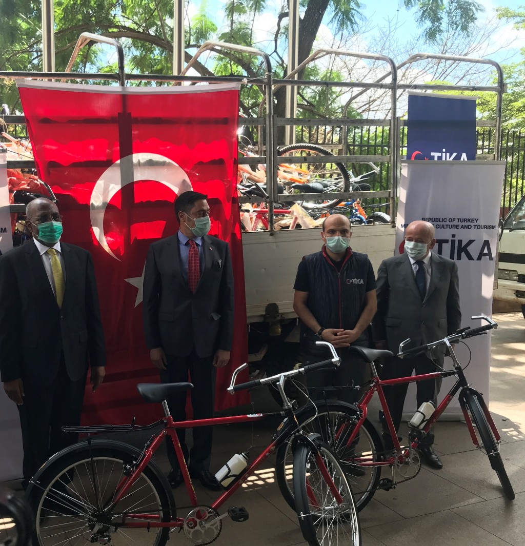 Küresel bir salgın haline gelen Kovid-19 ile mücadele kapsamında, Türk İşbirliği ve Koordinasyon Ajansı Başkanlığı (TİKA) tarafından temin edilen 100 adet bisiklet, Uganda’nın Kovid-19 Görev Gücü’ne teslim edildi.