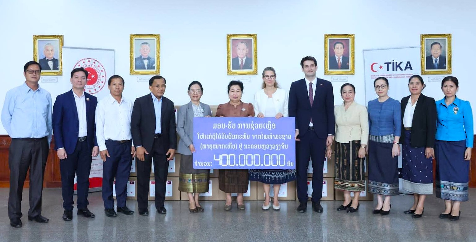Türkiye’nin Viyentiyan Büyükelçisi Oya Yazar ile Laos Kadınlar Birliği Merkez Yürütme Kurulu Başkanı Aly Vongnobountham’ın katılımıyla düzenlenen törende, TİKA tarafından temin edilen 500 gıda kolisi ve içme suyu Viyentiyan Valiliği’ne teslim edildi. Yardımlar, Viyentiyan Vali Yardımcısı Vilayvone Chanthalaty tarafından kabul edilirken, törende afet yönetim komitesi temsilcileri ve ilgili kurum yetkilileri de hazır bulundu.