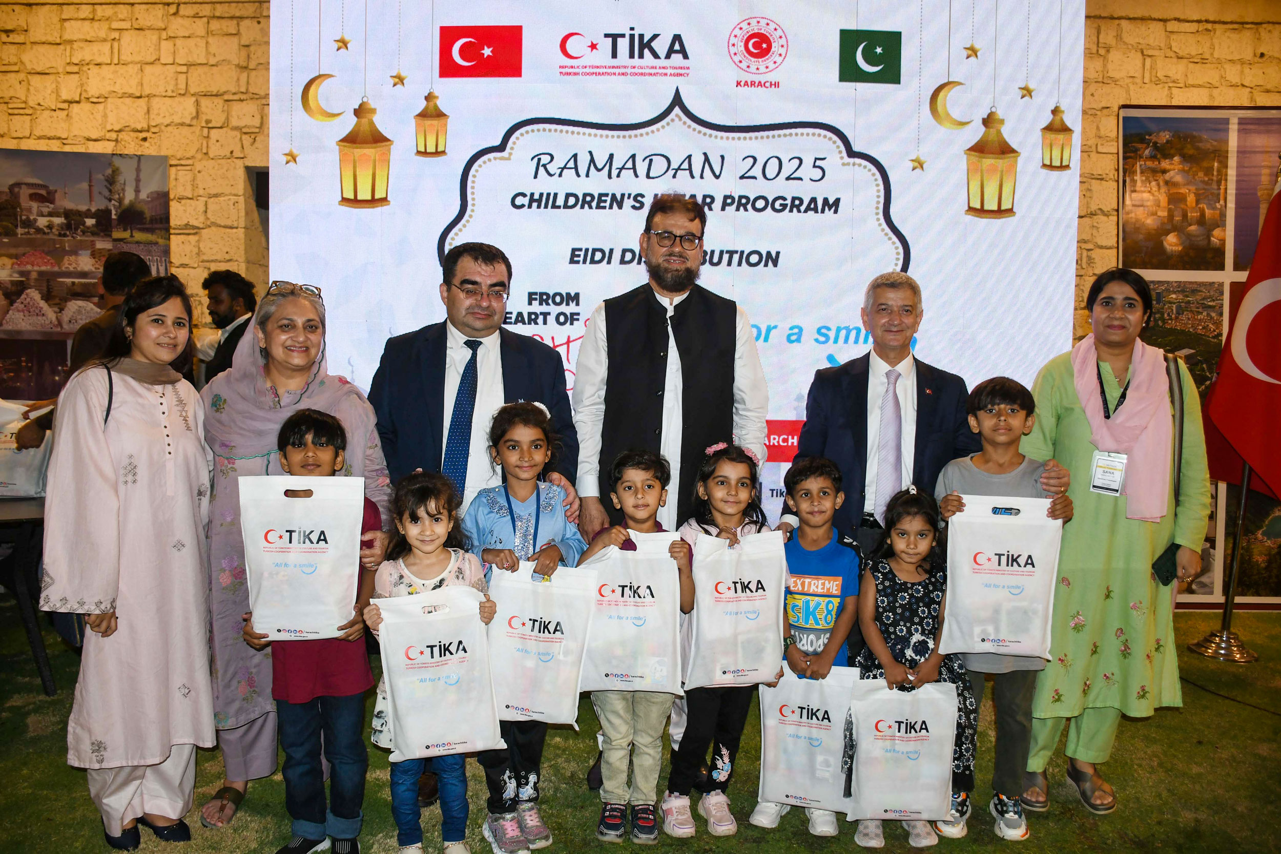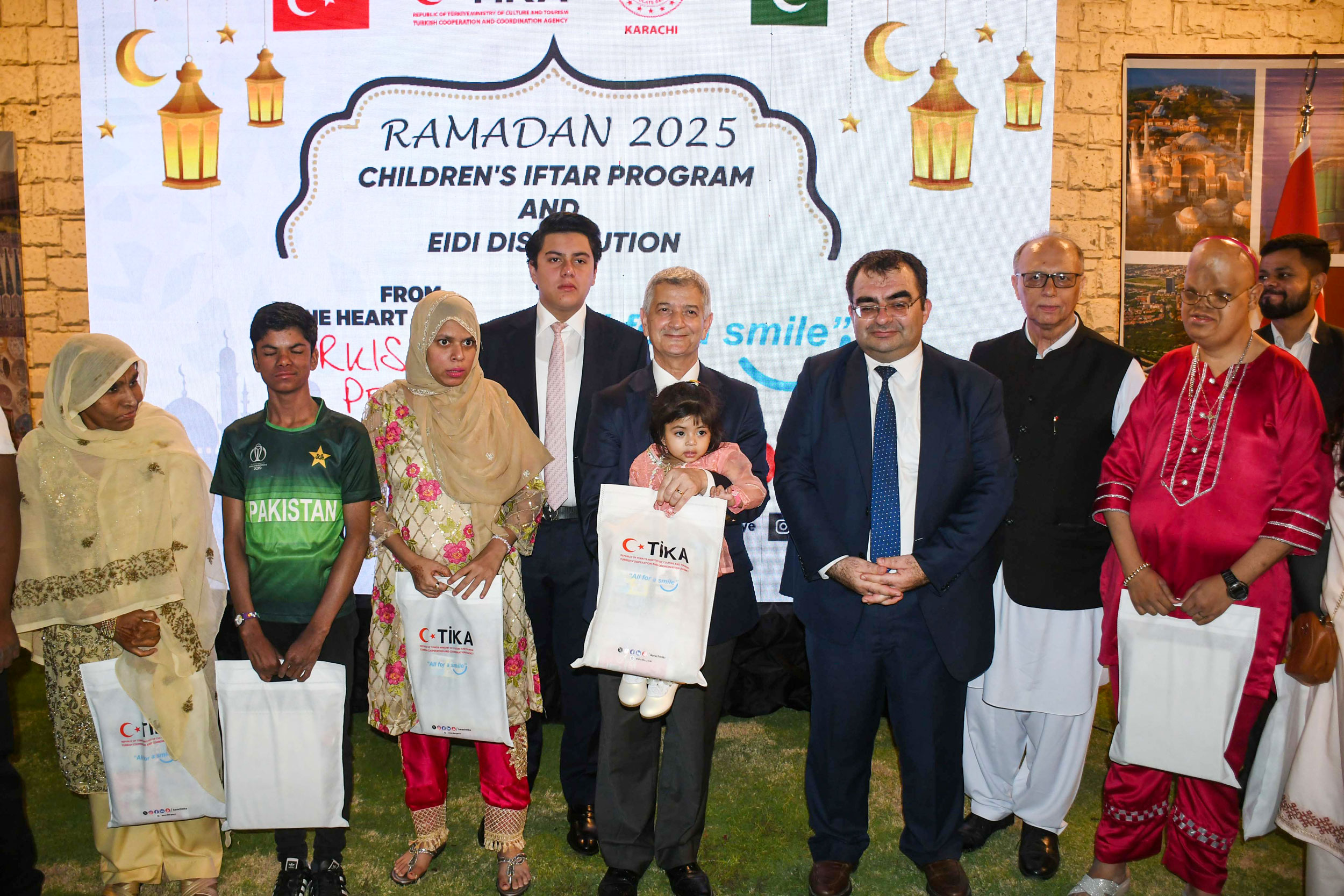 Programın ardından, Sindh Başbakanı Murad Ali Shah ve diğer davetliler, iftara katılan yetim ve engelli çocuklara TİKA tarafından hazırlanan bayramlık hediye paketlerini dağıttı.