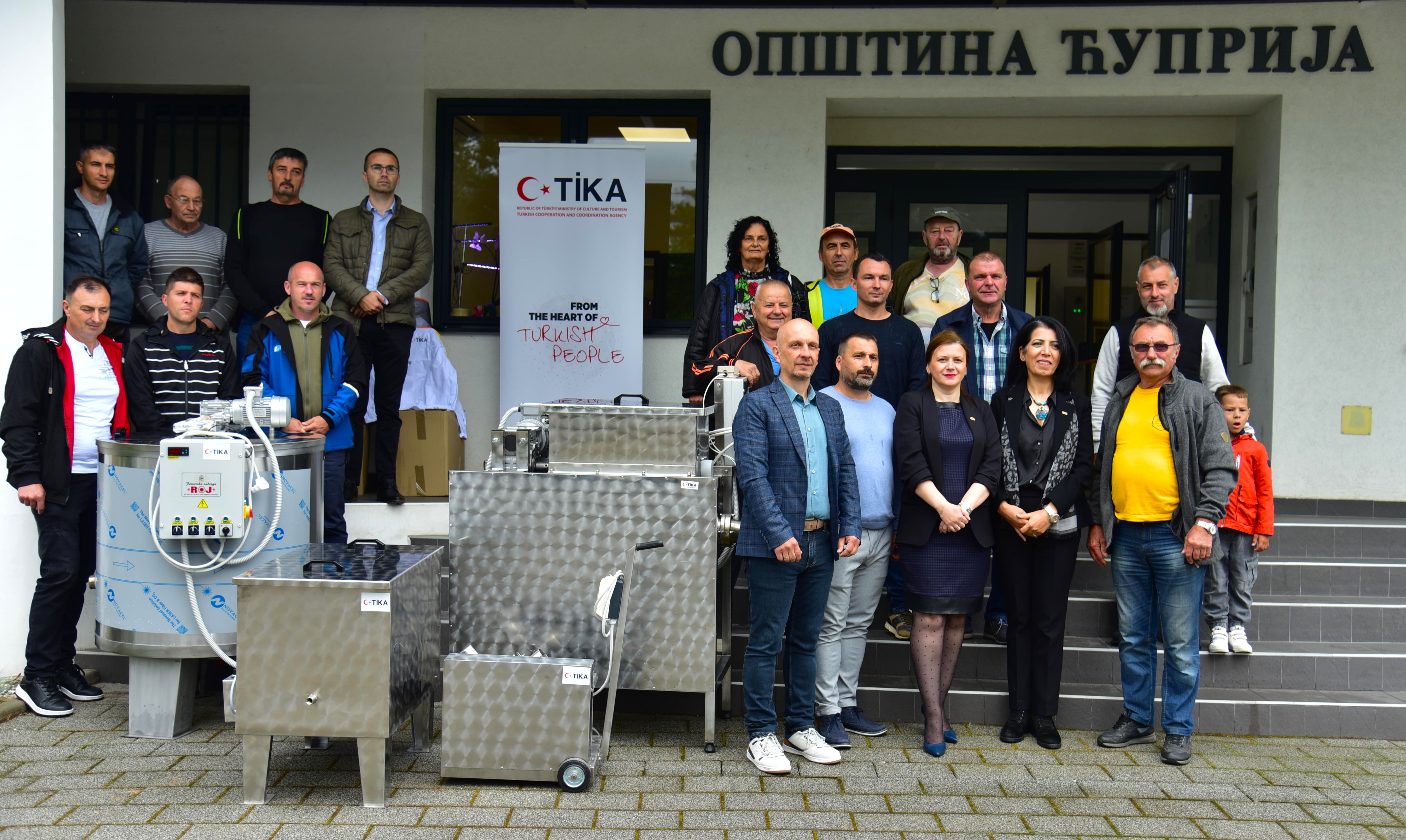 Bu kapsamda, Preşova’da arıcılıkla uğraşan üreticilere 150 adet arı kovanı, temel petek bal mumu eritme makinası ve invert şurup hazırlama kazanı teslim edildi. Çupriya’daki arıcılar ise arı keki yoğurma makinası, bal mumu eritme makinası, bal karıştırma ve dinlendirme kazanı ile bal pompası desteği aldı. Ayrıca, Preşevo ve Bujanovac’ın kırsal bölgelerinde faaliyet gösteren çiftçilere 20 adet motokültivatör sağlandı.