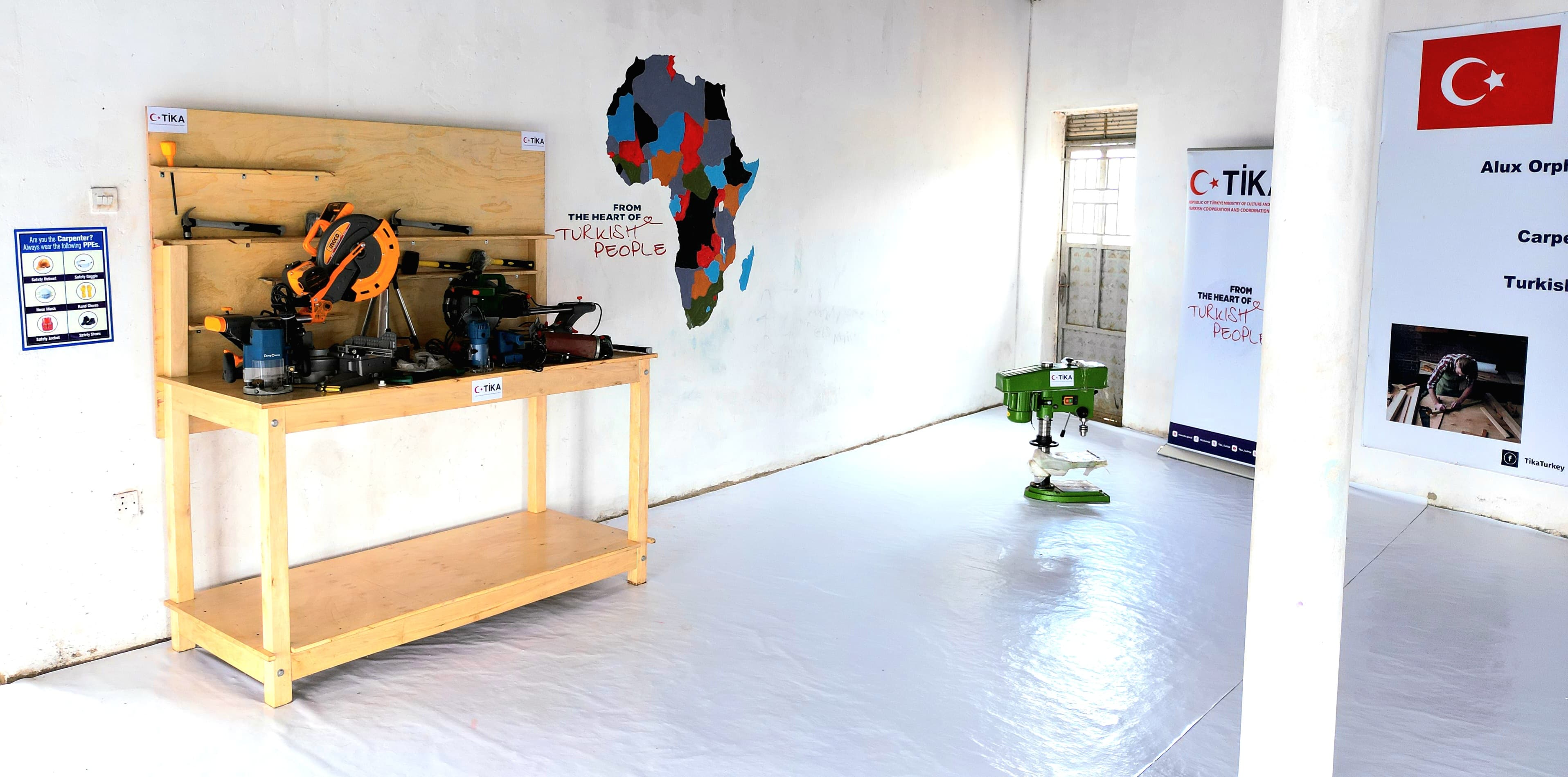 Teknik ekipman ve makinelerle donatılan atölye, yetim çocukların marangozluk alanında mesleki beceriler edinmesini ve sürdürülebilir geçim kaynaklarına ulaşmasını hedefliyor.