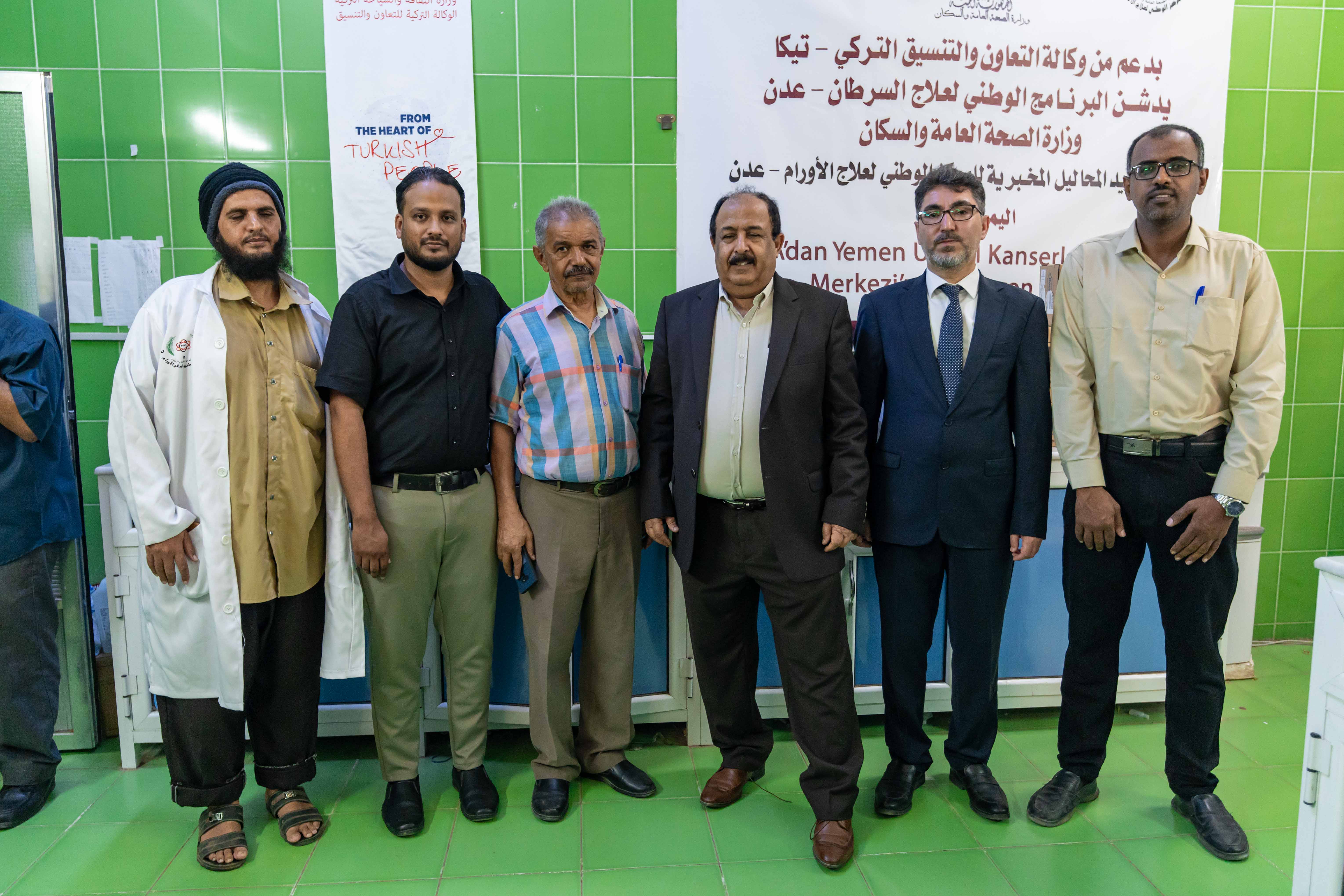 Aden’de düzenlenen teslim törenine, Yemen Ulusal Kanserle Mücadele Merkezi Başkanı Cemal Abdülhamid, TİKA Yemen Koordinatörü Zübeyr Yakaryılmaz ile merkezin idarecileri ve doktorları katıldı.
