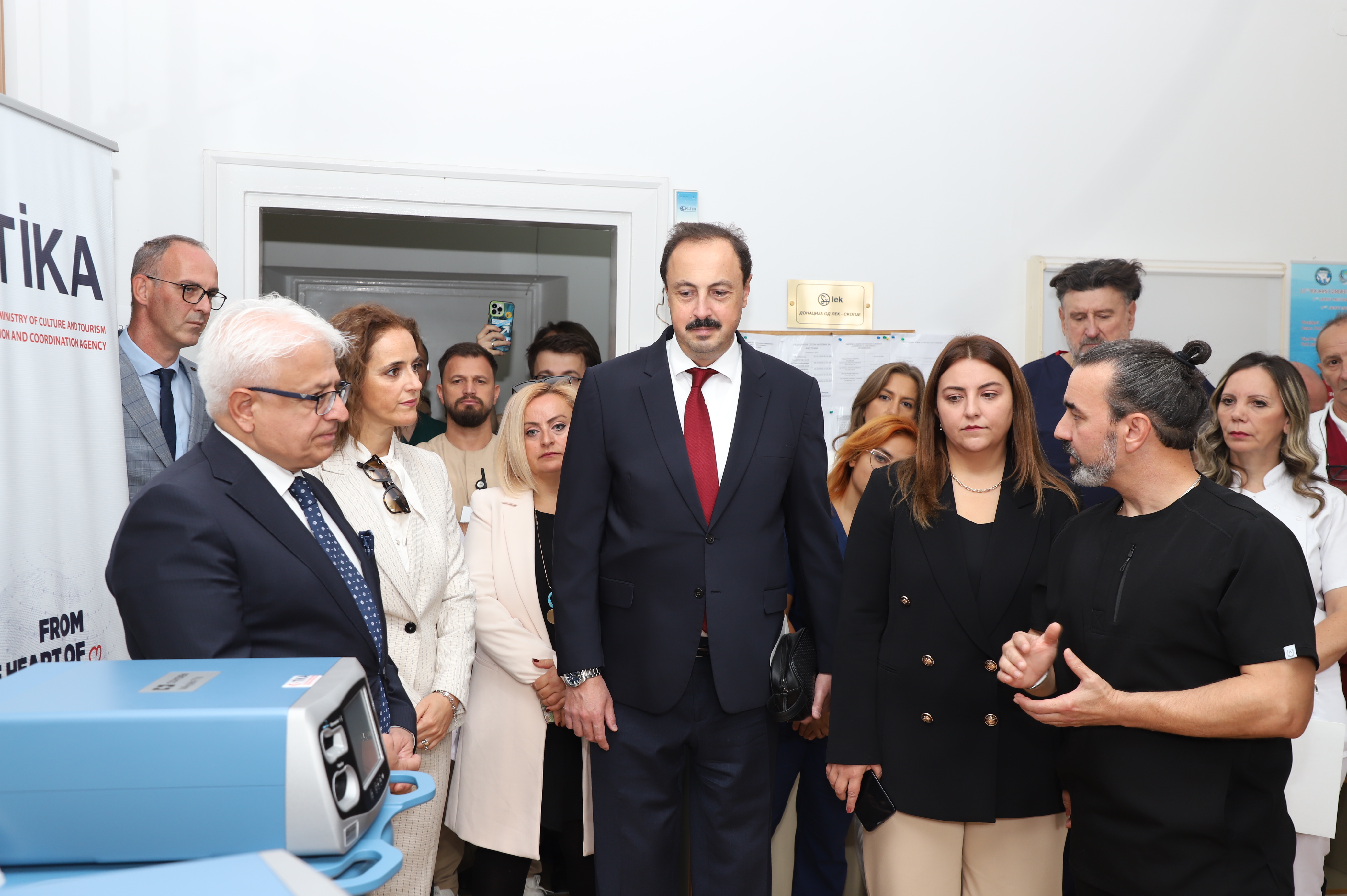 Sağlık Bakanı Azir Aliu, T.C. Üsküp Büyükelçisi Fatih Ulusoy, TİKA Başkan Yardımcısı Mahmut Çevik, TİKA Üsküp Koordinatörü Şeyma Babayiğit, Klinik Müdürü Dr. İgor Kamşikoski ve doktorların katılımıyla düzenlenen törende, cihazların teslimi gerçekleştirildi.
